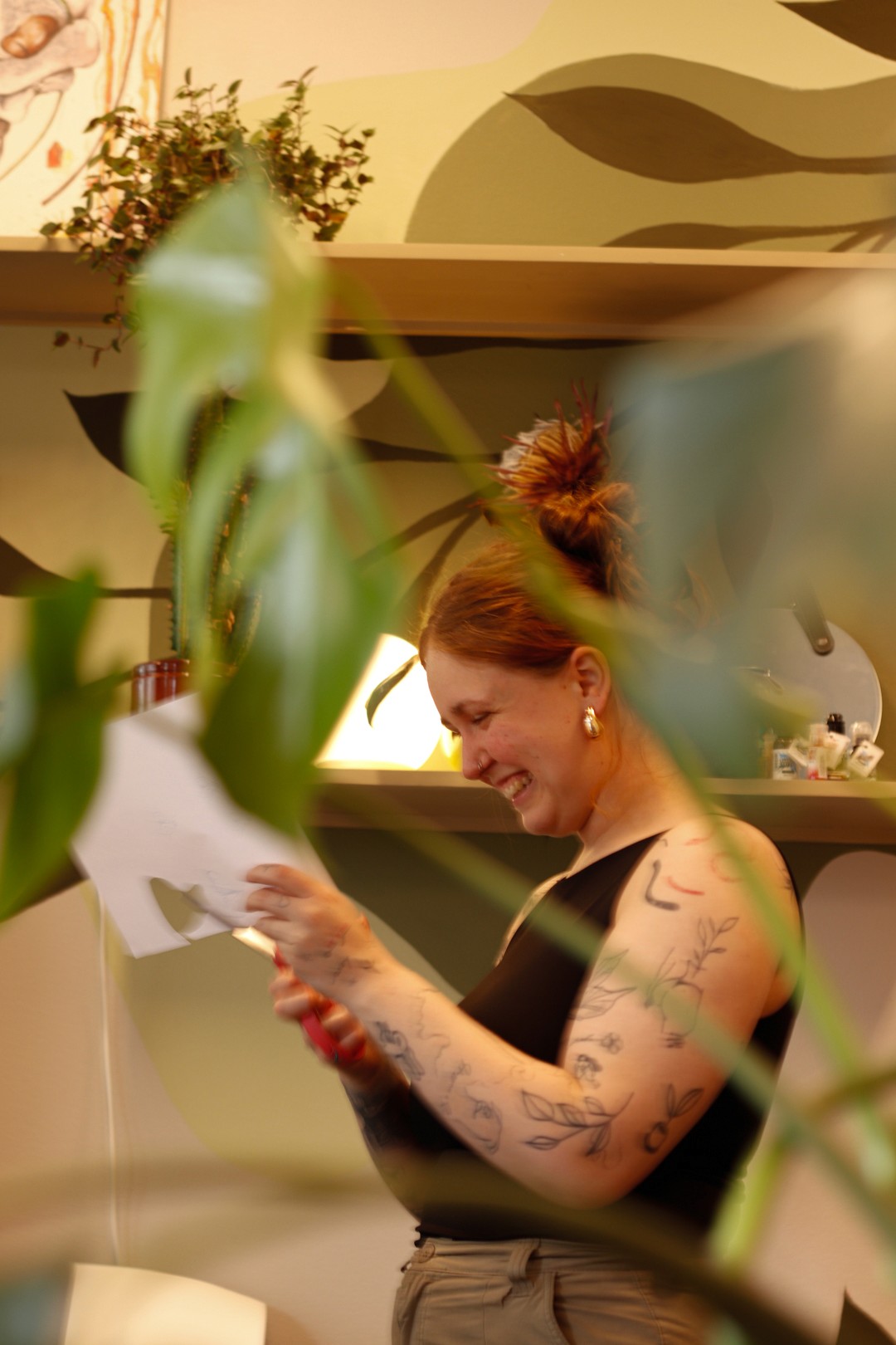 I do handpoke tattoos in Tampere, Kaleva, in my own studio, and I paint pictures to bring joy to people. It's important to me that every customer comes to me as themselves and feels safe. My passion is for big tattoos with a delicate and simple style, and absolutely lovely abstract pieces. In my work, I use a lot of straight lines and abstraction to create striking pieces to adorn everyone's own skin or walls.